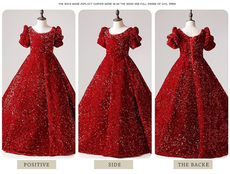 Dideyttawl 絶妙な赤いスパンコールジュニアコンサート誕生日キラキラ子供ページェントガウンフラワーガールドレス年