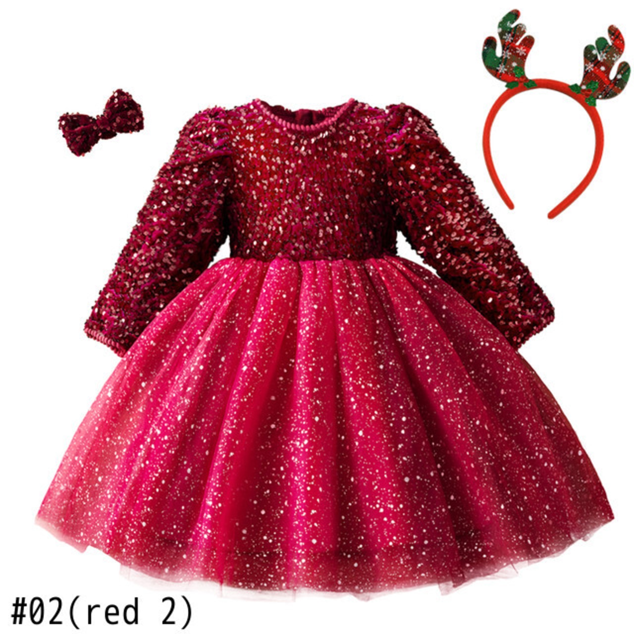 2022 クリスマスドレス女の子冬長袖暖かいニットセーター子供パーティーガウンクリスマス赤子供のドレス