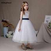 Dideyttawl チュール ノースリーブ ビッグボウドレス ガールズ 初聖体 2023 Aライン キッズ 誕生日パーティー ジュニア ブライドメイドドレス ホワイト