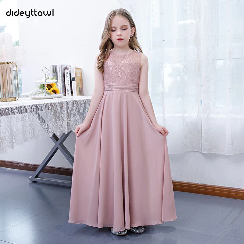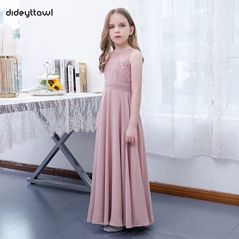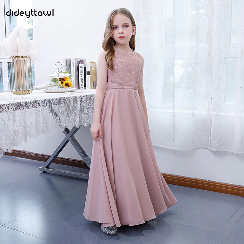 Dideyttawl ダスティピンクシフォンジュニアブライドメイドドレス 2023 ノースリーブレース A ラインロング誕生日パーティーフラワーガールドレス