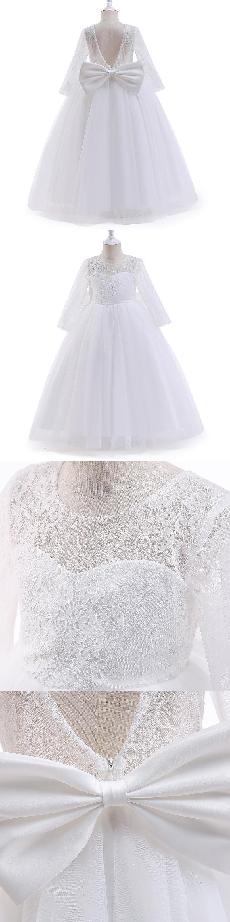 フラワーガールドレス結婚式背中の開いた子供の誕生日パーティーページェントガウン子供の初聖体白いレースのドレス