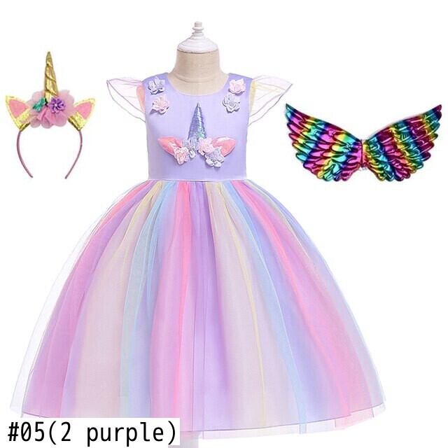 子供ユニコーンガールドレスウェディングイブニングドレス Chilren コスプレパーティー誕生日女の子洗礼服 3-8Year
