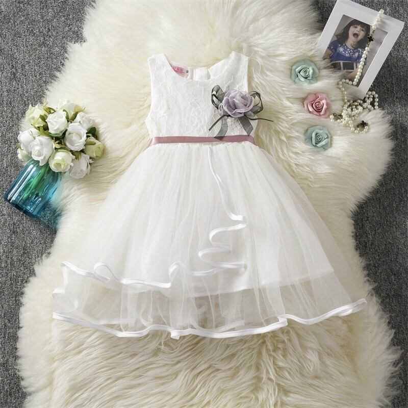 フラワーベビーガールレースチュチュドレスガールズキッズパーティーウェアリトルチルドレン 2 3 4 6 年ローブ Fille Vestidos