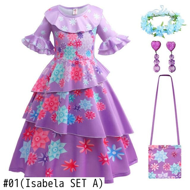 Encanto s ガールズ マドリガル イザベラ ミラベル コスプレ ドレス キッズ カーニバル ファンシー 誕生日パーティー