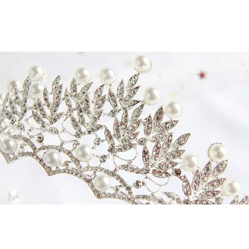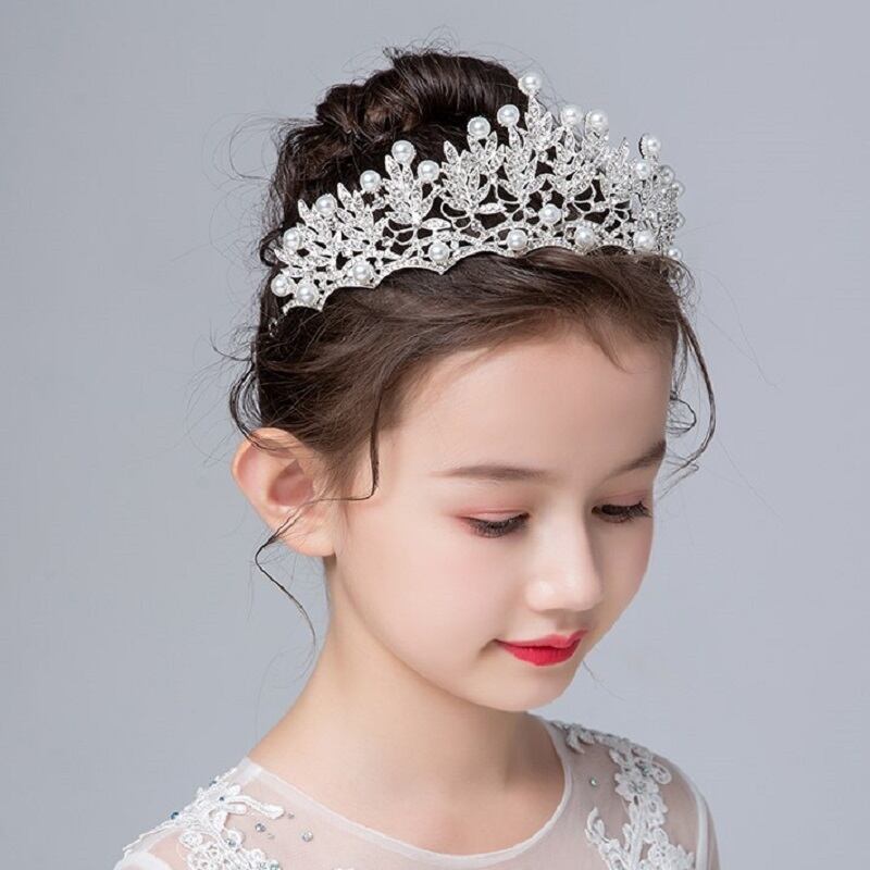 Dideyttawl シルバーカラークリスタルクラウンキッズガールズ真珠ティアラ王冠結婚式ジュニア花嫁介添人ヘアアクセサリー