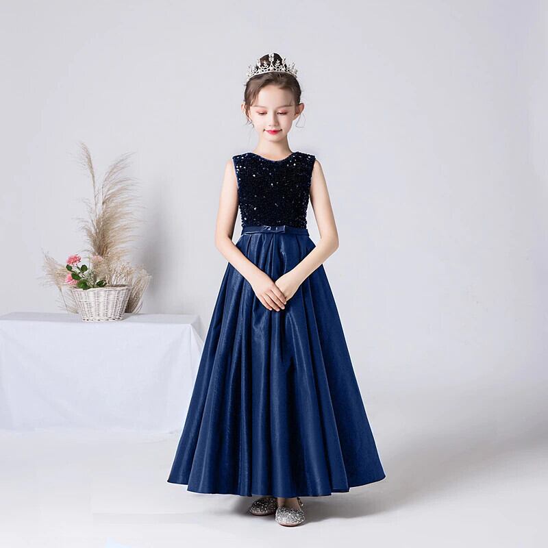 Dideyttawl 黒キラキラスパンコールサテンガールズドレス誕生日マルパーティーノースリーブジュニアコンサート宴会ガウン