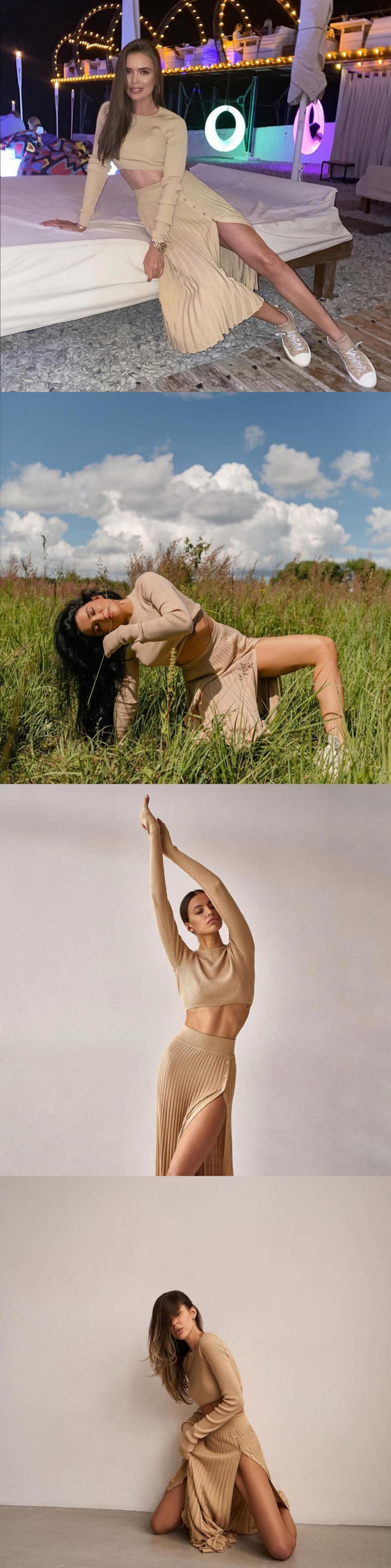 暗号固体セクシーなセータークロップドトップミディスカート 2 点セット女性マッチングセット衣装ボタンアップスプリットスカート冬