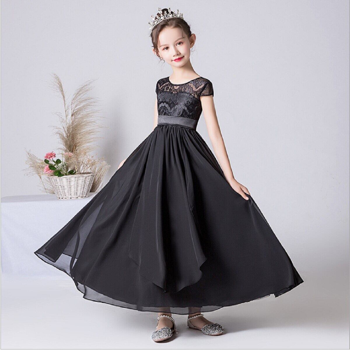 Dideyttawl 黒シフォンレースジュニアブライドメイドドレス 2021 ベルトガールズフラワードレス結婚式やパーティー初聖体ガウン