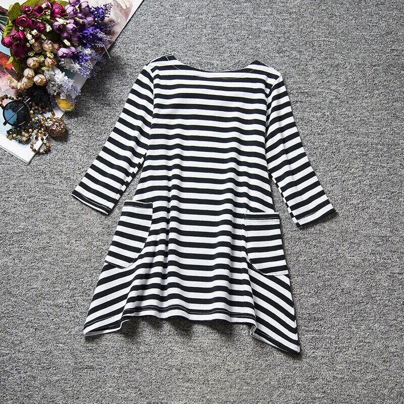 キッズ ストライプ ドレス 女の子 2022 春 秋 長袖 ベビー ヴィンテージ ルーズ ドレス ポケット付き 子供用