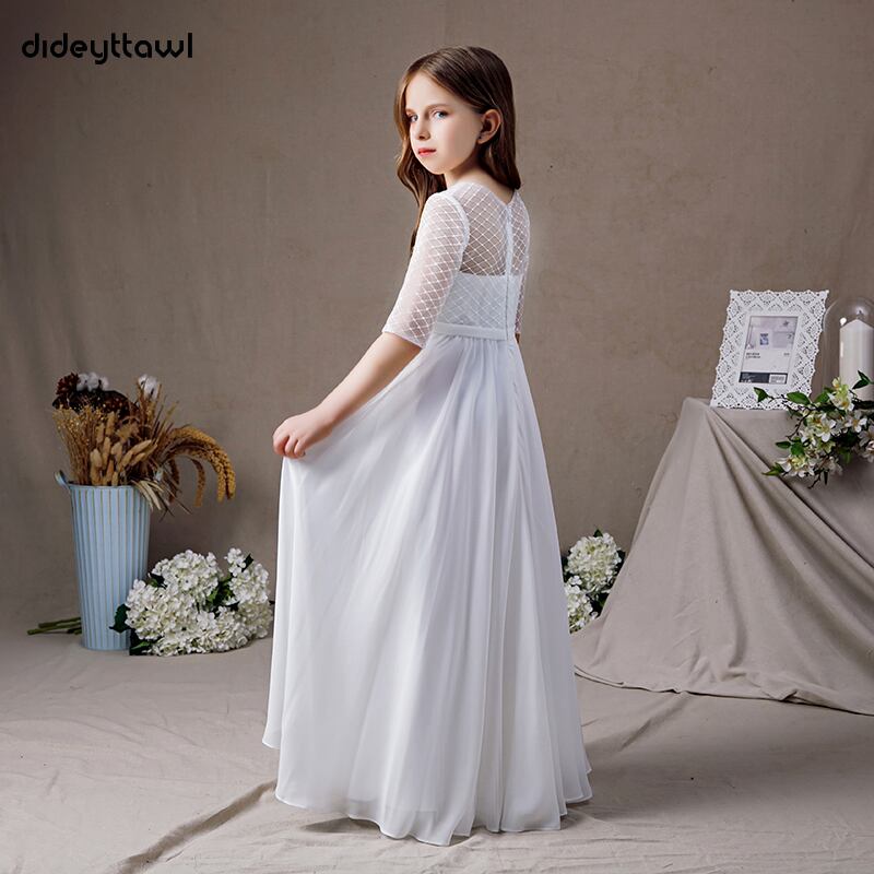 Dideyttawl ホワイト シフォン チェック フラワー ガール ドレス ウェディング 2023 ハーフスリーブ コンサート ジュニア ブライドメイド ガウン 誕生日パーティー