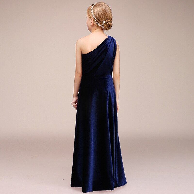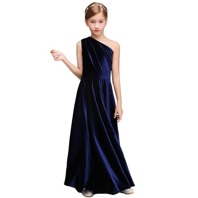 Dideyttawl ワンショルダーロングマル誕生日パーティードレス女の子 2022 ベルベットコンサートガウンフラワーガールドレス