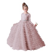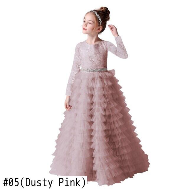 Dideyttawl グレー長袖ドレス女の子 2023 レースチュールジュニアコンサートガウン宴会マルパーティー冬