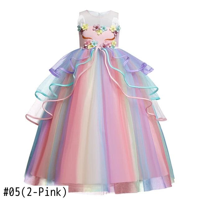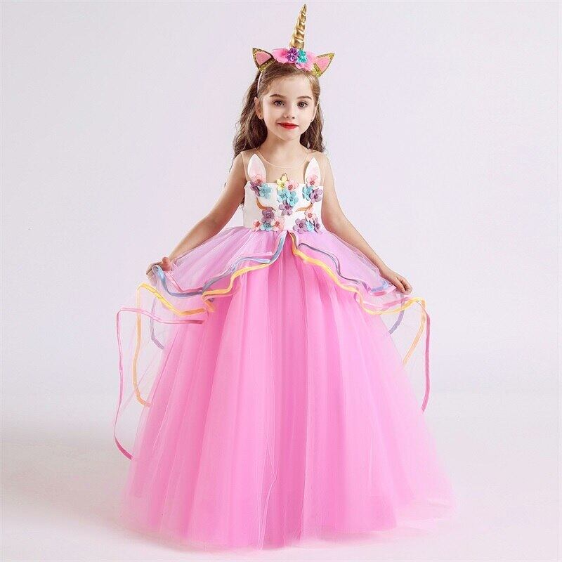 ユニコーンチュチュドレス少女夏ノースリーブパーティードレス子供ファンシーウェディングドレス誕生日刺繍