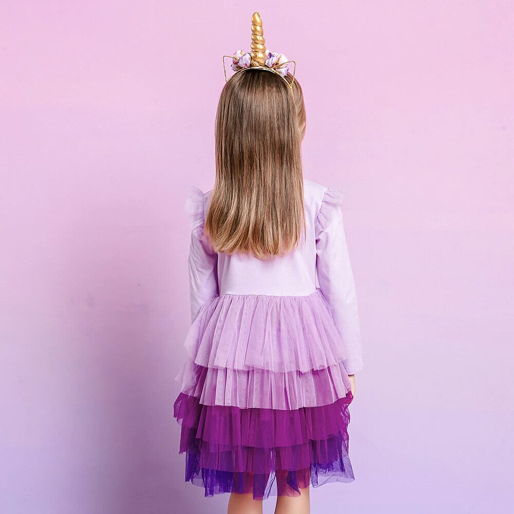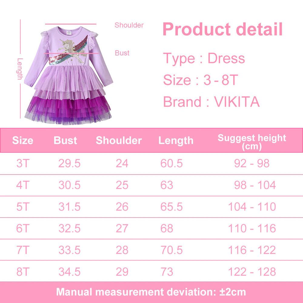 VIKITA クリスマス子供ドレス 2022 冬の女の子ユニコーン幼児の誕生日パーティーレイヤードレス漫画の女の子
