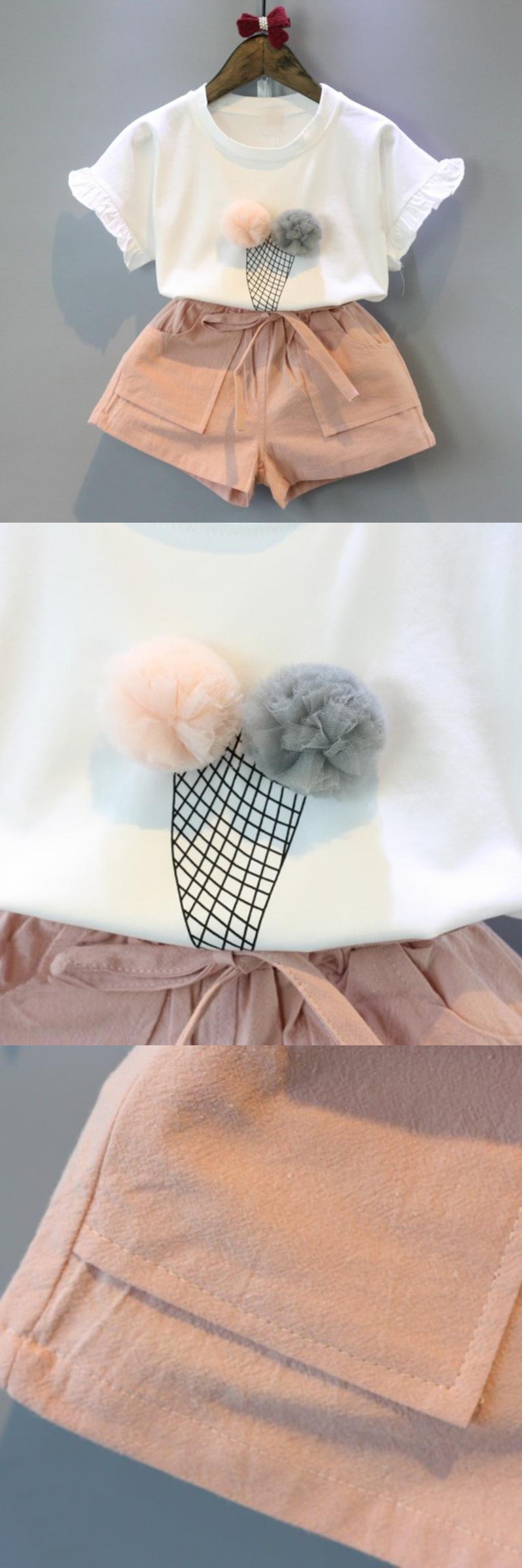 ベアリーダーガールズセット 2022 夏子供服花柄シフォンホルター + 刺繍ショーツわら子供