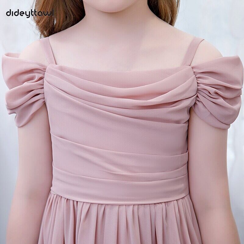 Dideyttawl シフォンオフショルダーフラワーガールドレスプリーツジュニアウエディングドレス子供の誕生日ページェントパーティーガウン