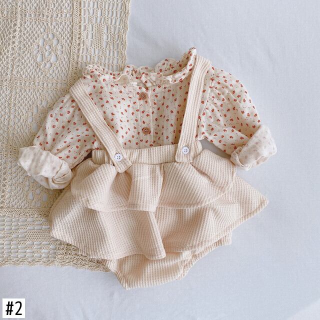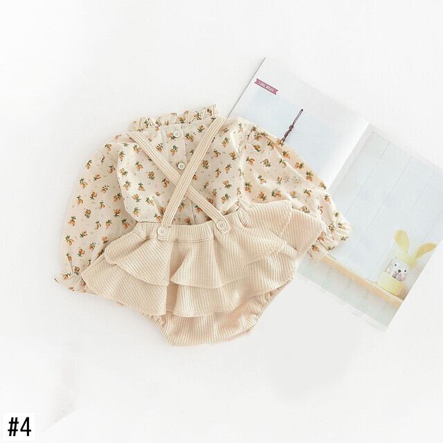 0-24 ヶ月生まれの女の赤ちゃん服セット長袖チェック柄シャツ花柄トップス + サスペンダーロンパース幼児ボディスーツ冬服