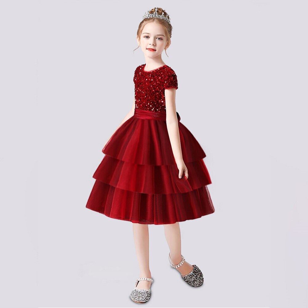 Dideyttawl キラキラ ショート フラワー ガール ドレス 誕生日 ティアード フリル スパンコール くるぶし丈 パーティー ガウン