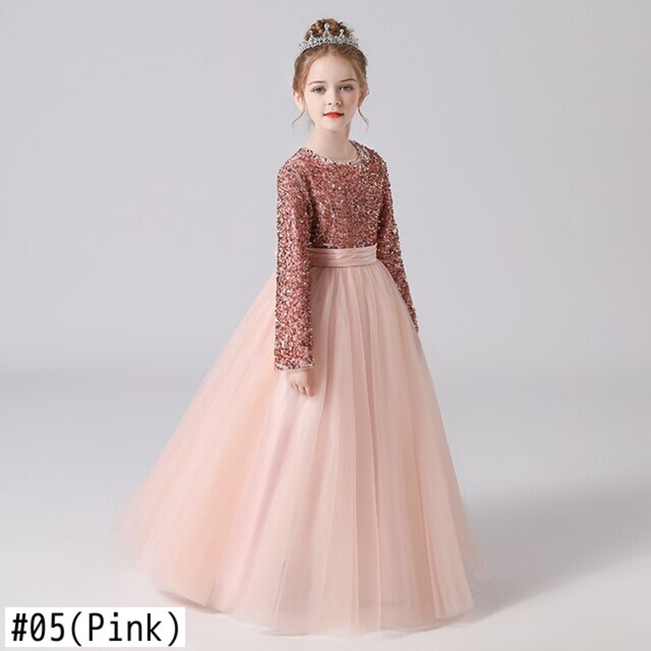 Dideyttawl スパンコール チュール 長袖 フラワー ガール ドレス ウェディング ジュニア ブライドメイド イブニング パーティー ドレス 女の子 ページェント ガウン
