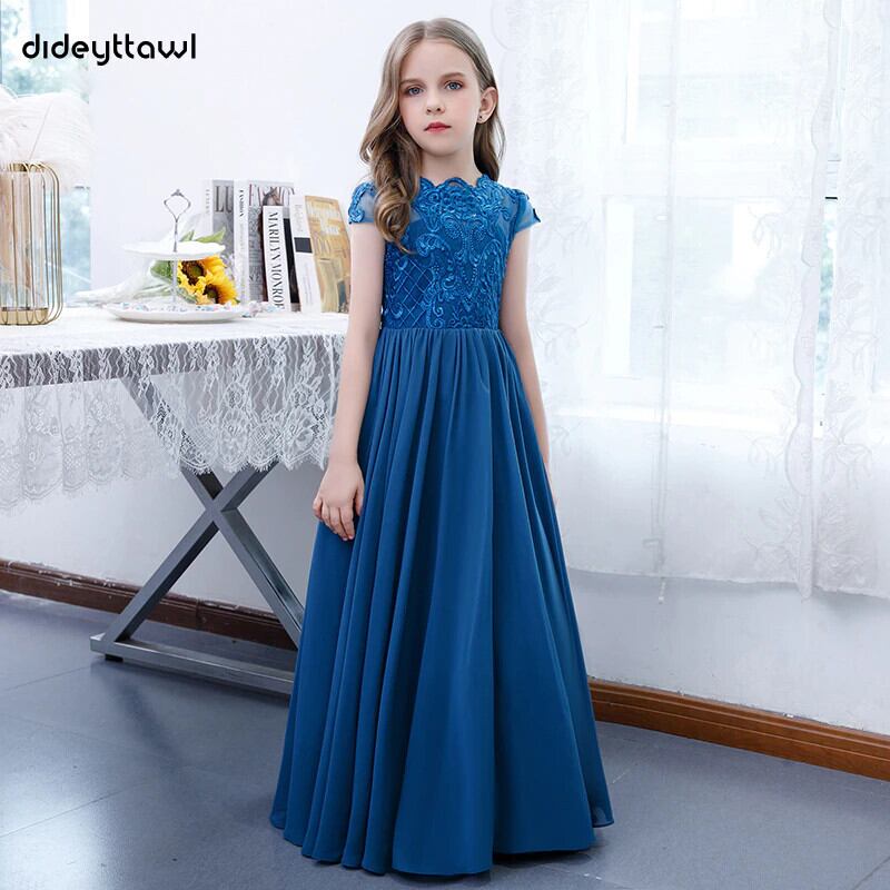 Dideyttawl 2022 ロイヤルブルー シフォン レース フラワー ガールズ ドレス キャップ スリーブ Aライン ジュニア ウエディングドレス 誕生日パーティー