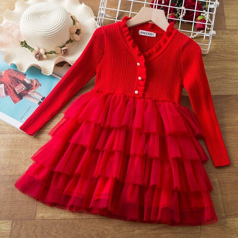 2022 ニットセータードレス女の子長袖暖かい冬の子供クリスマスパーティーチュチュドレス赤年ガウン