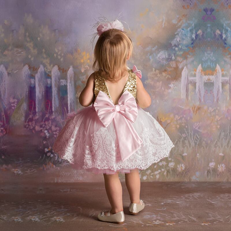 赤ちゃん 1st 誕生日パーティードレス女の子背中の開いたスパンコール子供セレモニーマルウエディングドレス新生児幼児洗礼 Vestidos