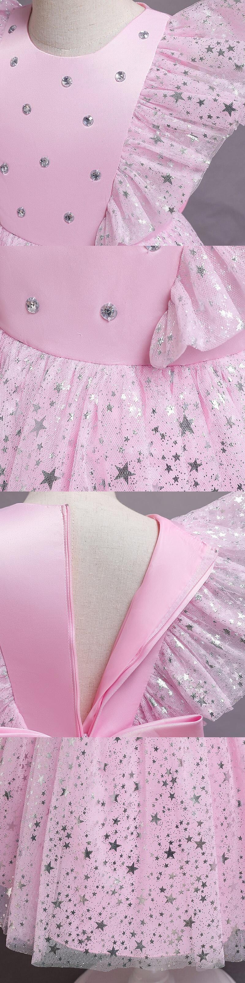 パフスリーブキッズパーティードレス女の子スパンコールベビー誕生日洗礼 Vestidos 子供の結婚式の宴会夜会服