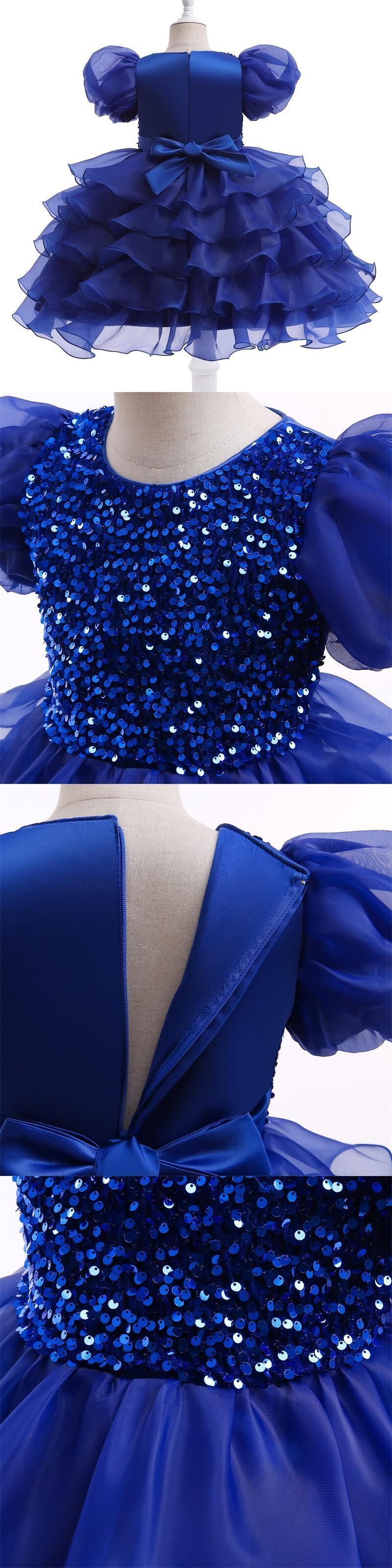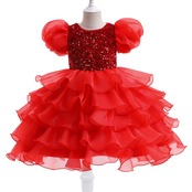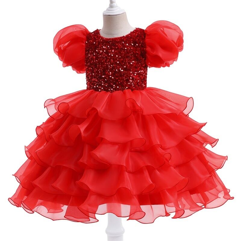 フラワーガールドレス結婚式ピンクスパンコール誕生日パーティーレイヤードドレスパフスリーブ子供チュール夜会服