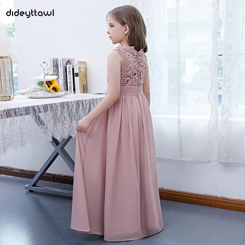 Dideyttawl ダスティローズロングシフォンフラワーガールドレス 2022 ノースリーブコンサートジュニアウエディングドレス女の子の誕生日ガウン