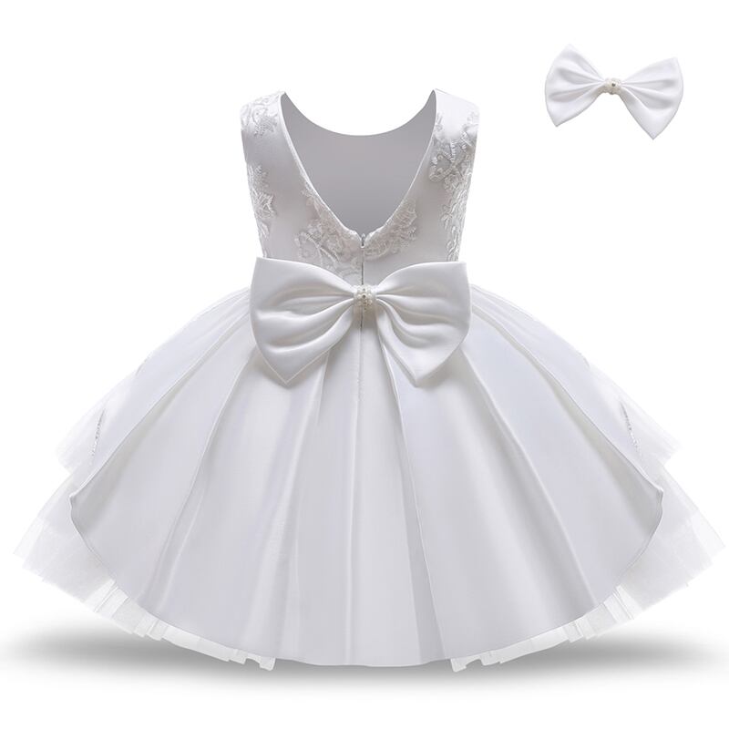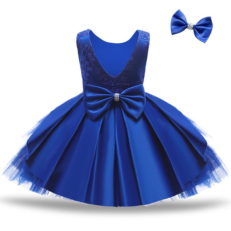 幼児ベビー洗礼 1 歳の誕生日ドレス女の子レース背中の開いた弓チュチュ結婚式パーティーノースリーブサマードレス
