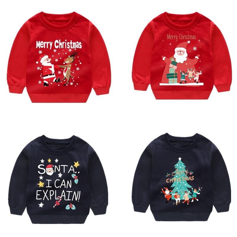 ベビークリスマス服 2-6 年サンタクロース漫画男の子長袖 Tシャツキッズガールズ冬クリスマス年トップス