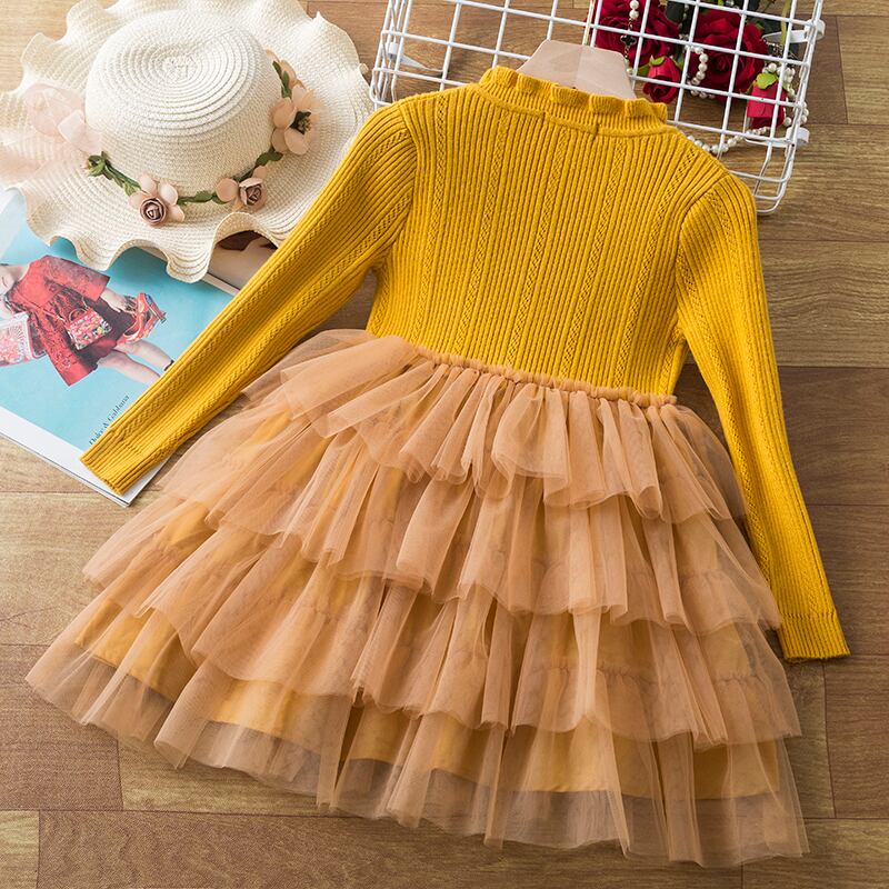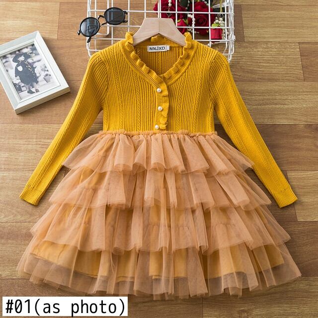 女の子ニットセータードレス子供長袖冬暖かいイブニングキッズ子供結婚式誕生日ガウン