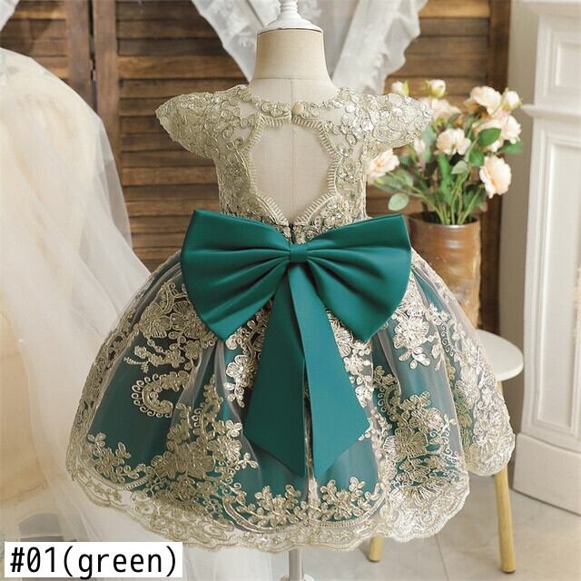 女の赤ちゃんクリスマスパーティードレス花刺繍キッズ結婚式誕生日ドレス年クリスマスグリーンレースガウン