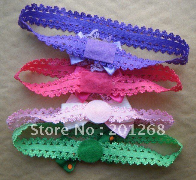 ベビー ヘッドバンド シャイニー ストレッチ ベビー レース ヘッドバンド リボン付き レース フリル ヘアバンド ヘア アクセサリー 50個/ロット