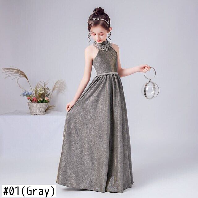 Dideyttawl シルバーシャイニングフラワーガールドレスウェディングパーティーロング誕生日ガウンジュニア Concet mal ページェントガウン