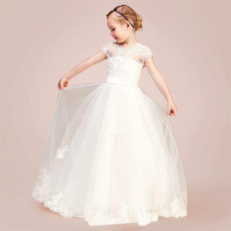 Dideyttawl チュール ジュニア コンサート レース ガールドレス 誕生日 ウェディング ページェント パーティー 2022 ホワイト
