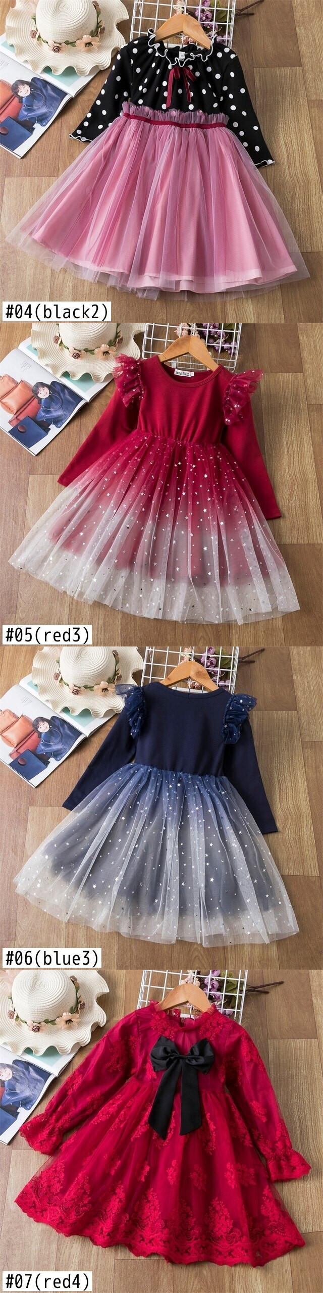 フラワーガールウェディングパーティードレス 3 6 8 歳春秋長袖チュール誕生日 Vestido 子供ガラドレス