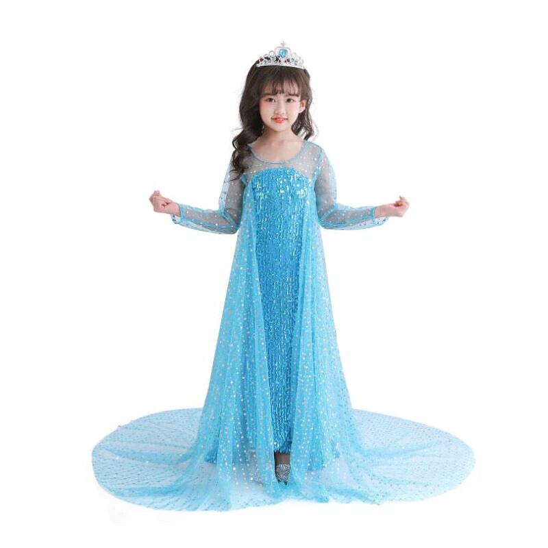 エルザ ドレスアップ ガールズ クリスマス ブルー スパンコール ドレス エルザ アナ キッズ ウェディングドレス フルレース かわいい