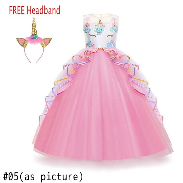 ユニコーン ガールズ 誕生日パーティー ロングドレス カーニバル キッズ クリスマス コスプレドレス 4-12歳