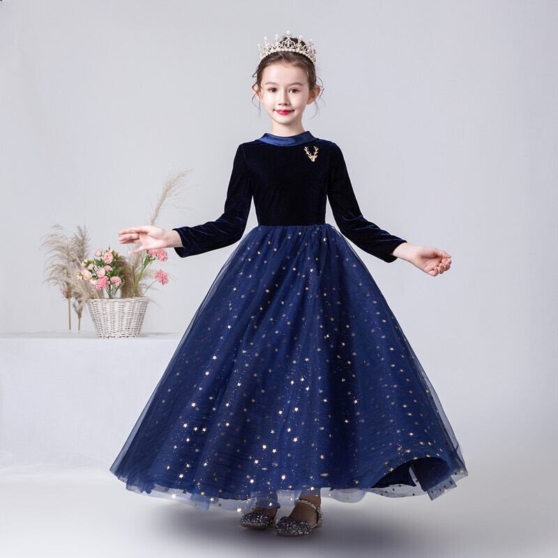 Dideyttawl ヴィンテージ女の子マルフラワーガールドレスベルベット長袖足首の長さジュニアウエディングドレスウェディングパーティー
