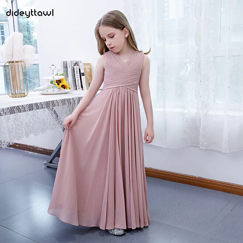Dideyttawl シンプルな十字プリーツ シフォン フラワー ガール ドレス 2022 V ネック プリーツ ノースリーブ A ライン ロング 初聖体ガウン
