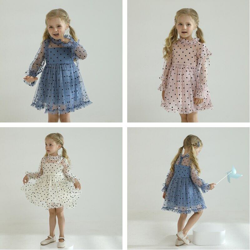 水玉長袖ガールズドレス秋冬 2-6 歳の子供の誕生日ドレスフリル子供の
