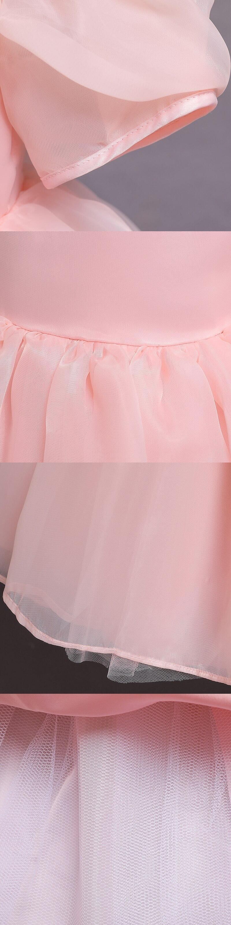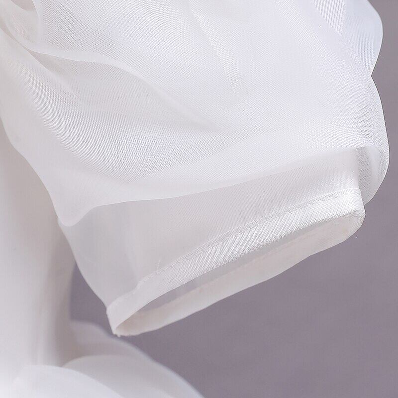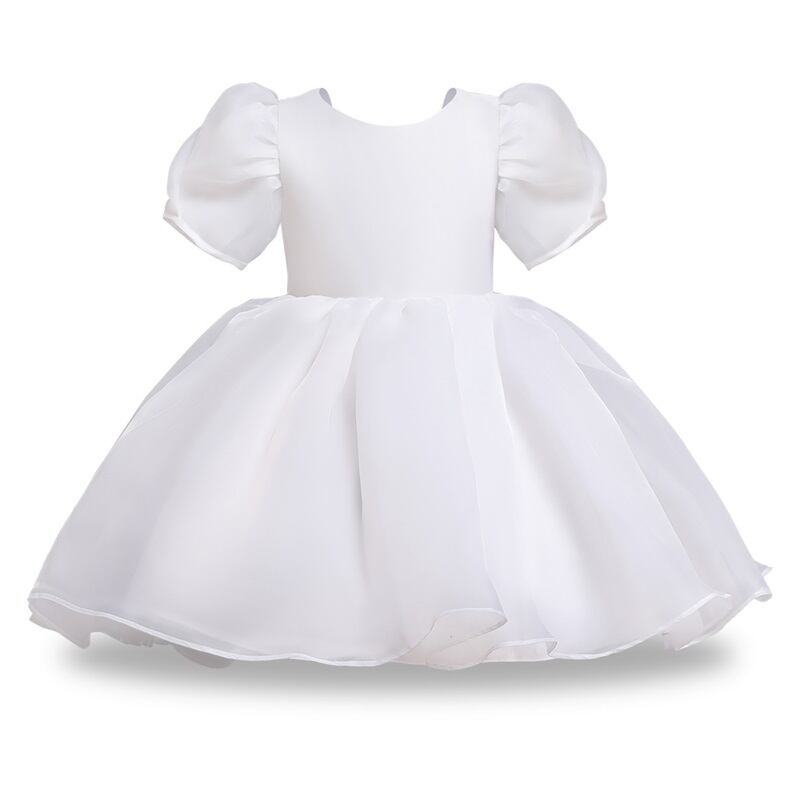 パフスリーブ リトルガールズ パーティードレス 初聖体 Vバック 誕生日 ウェディングドレス ホワイト キッズ イブニングマル