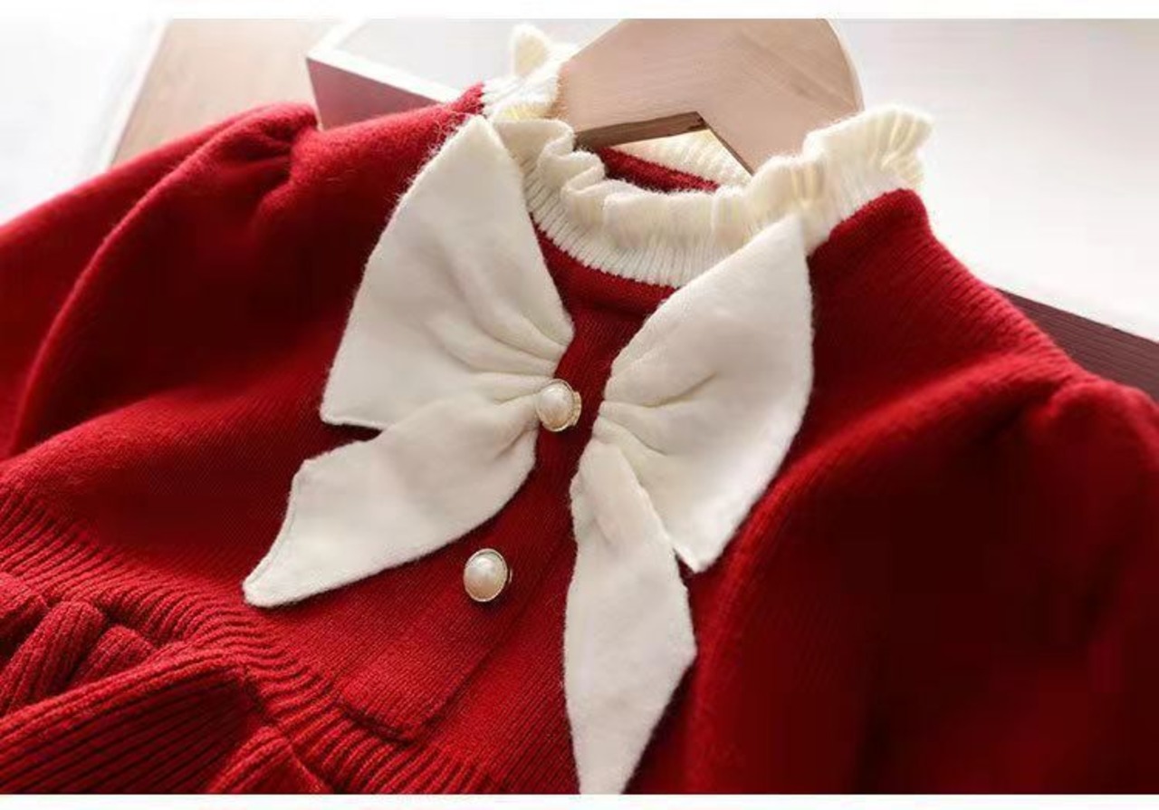 女の子ニットドレス冬暖かい厚い長袖服子供赤クリスマスベビーイヤードレス弓誕生日ドレス