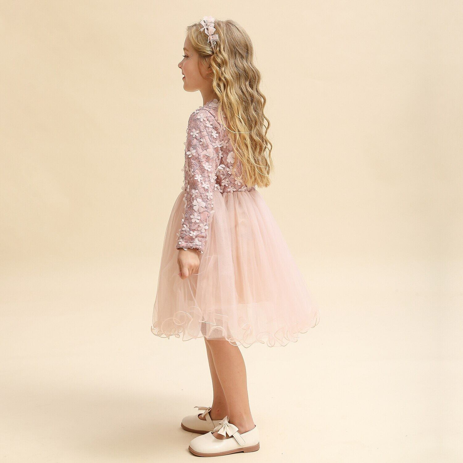 女の子秋冬ドレス花子供パーティー Vestidos レースアップリケ子供長袖秋