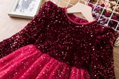 女の子赤スパンコールシャイニングドレス秋/冬フルスリーブクリスマス 3-8 歳の子供の誕生日パーティーチュール服