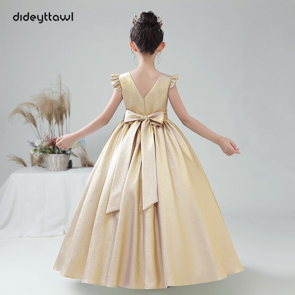 Dideyttawl グリッターサテンガールドレス Gir キッズロングジュニアコンサート誕生日パーティーページェントガウン 2022 ボールガウン