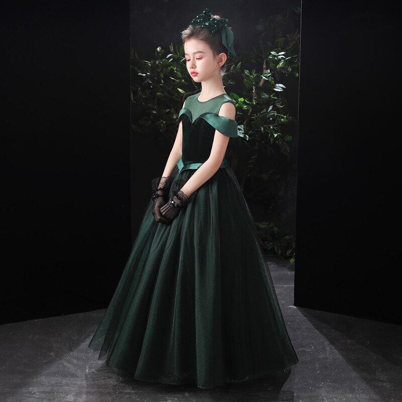 チュールオフショルダー女の子の誕生日パーティーガウンベルベットマルイブニングページェントドレスヴィンテージフラワーガールのドレス結婚式