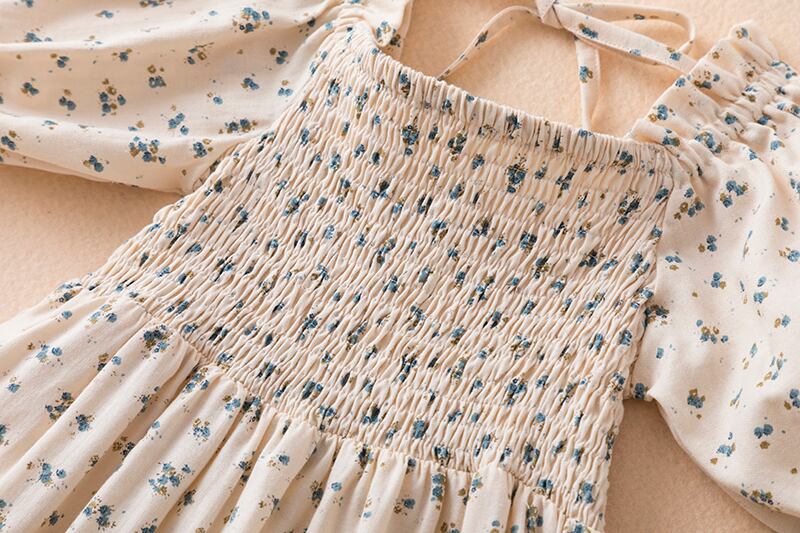 3-8 歳のサマードレスキッズプリントヴィンテージスモッキングドレス花柄シフォン誕生日ウェディングパーティーガウン子供