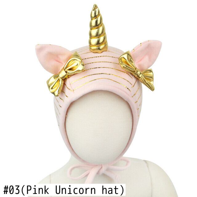 コットン ベビー 女の子 ウサギの耳 ユニコーン ホーン ハット 保育園 ビーニー キャップ リボン付き